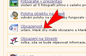 - V menu, kde můžete upravovat veškeré údaje o ubytovacím zařízení, vyberte "Obsazenost", jak je znázorněno na obrázku vpravo.